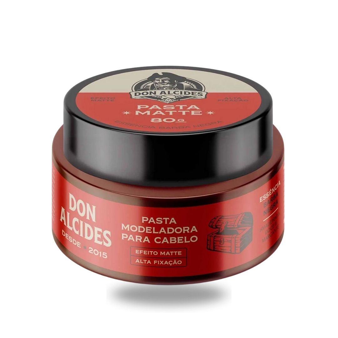 A Pasta Matte Don Alcides Barba Negra é o modelador capilar ideal para quem busca controle total do penteado com um acabamento natural e sem brilho. Desenvolvida com tecnologia de ponta, ela combina alta performance de estilização com ativos que tratam a saúde dos fios.